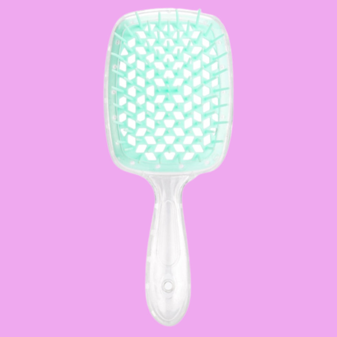 Bid farewell to the hassle of knots and tangles with The UnBrush. This remarkable brush handles even the most unruly hair with a gentle yet thorough touch. Whether your hair is wet or dry, it effortlessly untangles knots, and it's also your time-saving ally, reducing blow-dry time by up to 50%. The UnBrush isn't just easy on your hair but also on your cleaning routine. Experience stress-free cleanup as you make your UnBrush look brand new in under 5 minutes. Embrace the convenience and efficiency of The UnBrush, simplifying your daily hair care regimen while leaving your hair looking its best.